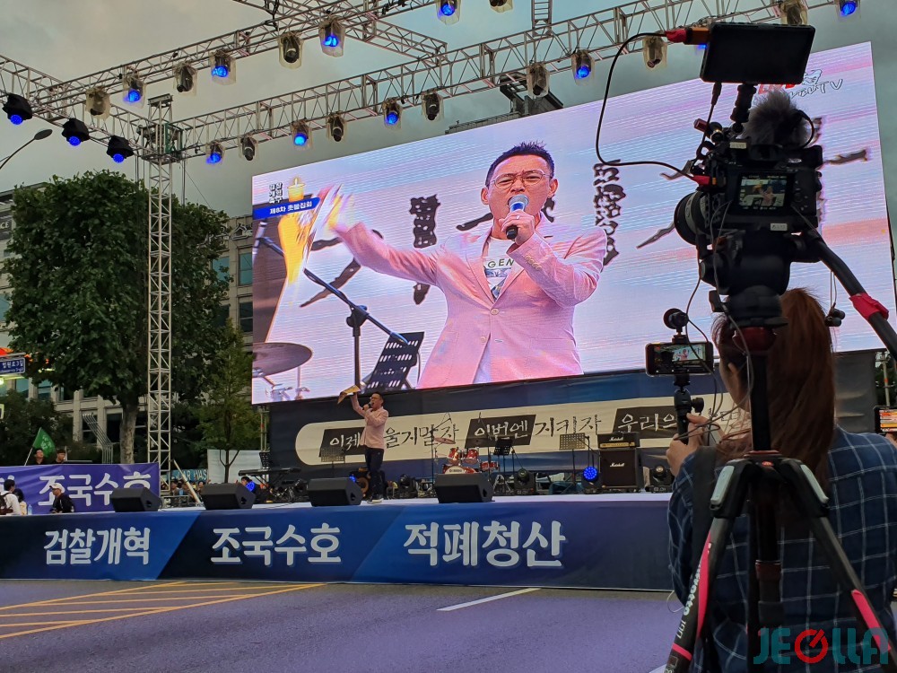 집회가 열리던 시각, 집회장에 서울중앙지검에서 정경심교수의 조사가 이뤄지고 있다는 소식이 전해졌다. 집회현장이 들썩거렸다. 검찰 개혁을 연호하는 구호는 더 커졌고, 대검찰청을 향해 야유의 함성은 서초동을 울렸다.