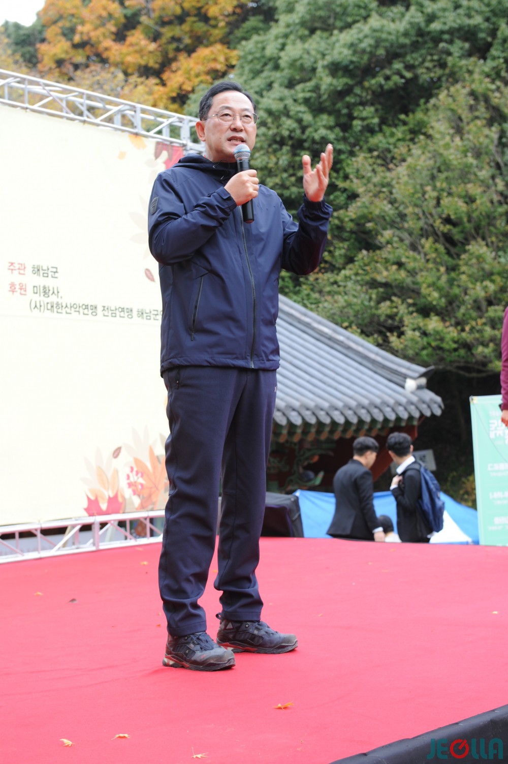 환영사를 하고 있는 명현관 해남군수. 달마고도 조성 경위까지 설명하시느라 연설이 길어지시네요