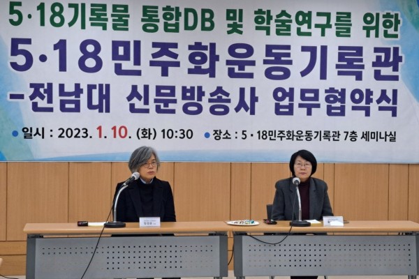 광주광역시5·18민주화운동기록관과 전남대학교 신문방송사는 10일 5·18민주화운동기록관에서 ‘5·18기록물 통합DB구축 사업 및 학술연구를 위한 업무협약’을 체결했다. 5·18기록관은 2021년부터 여러 기관에 산재돼 있는 …