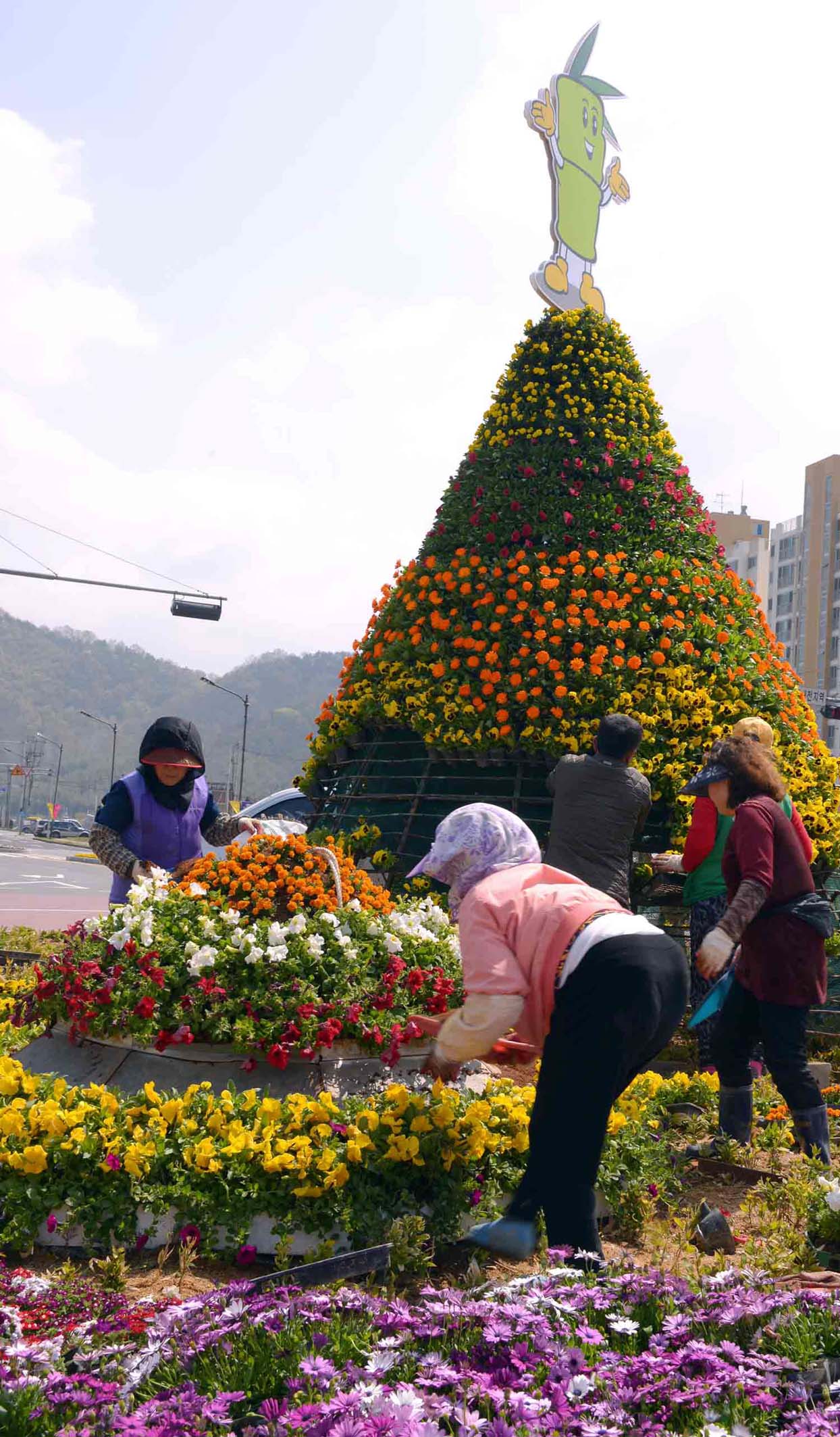 제15회 담양대나무축제장 찾은 관광객 맞을 아름다운 꽃탑